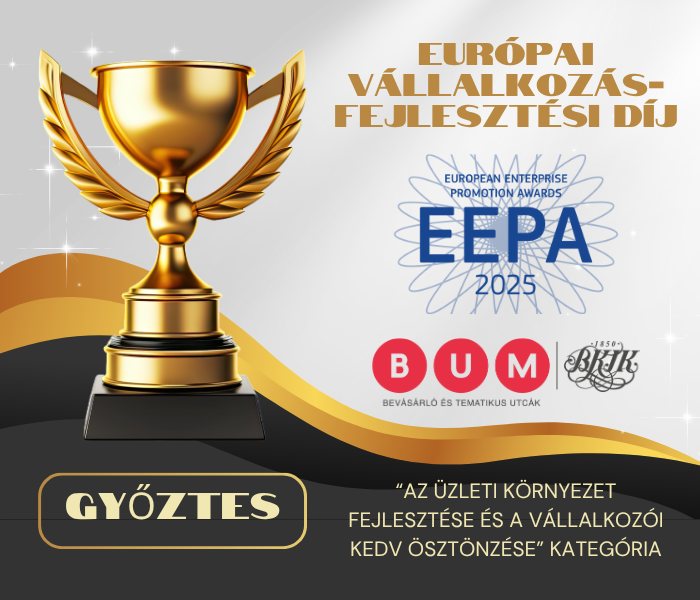 A Budapesti Kereskedelmi és Iparkamara kis- és középvállalkozásokat támogató nonprofit Kft-je, a Bevásárlóutca menedzsment (BUM), elindult az Európai Bizottság és a Nemzetgazdasági Minisztérium idei évben is meghirdetett Európai Vállalkozásfejlesztési Díjáért. „Az üzleti környezet fejlesztése és a vállalkozói kedv ösztönzése” kategóriájában a legjobb értékelést kapta a BUM, és egyúttal azon kiválasztott kategória-győztesek közé került, akik az európai fordulóban is megmérettethetik magukat.