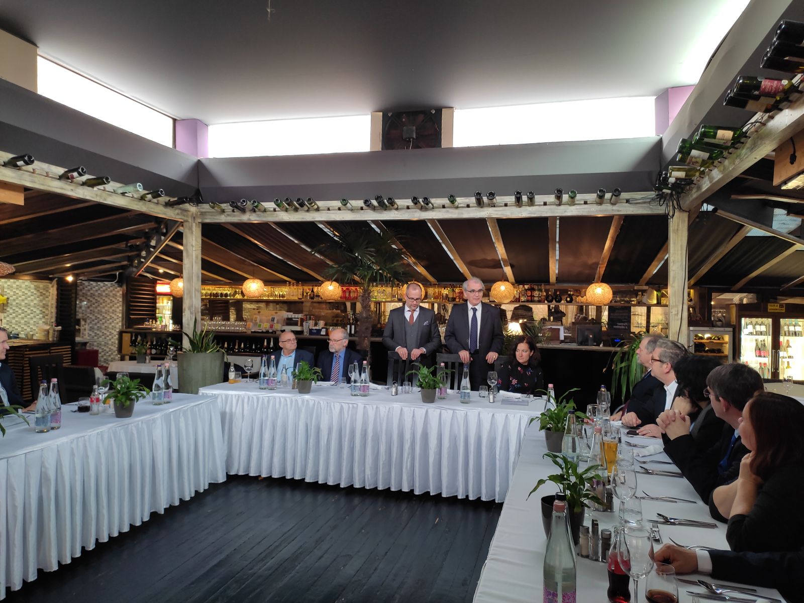 A delegáció következő állomása a Budapesti Kereskedelmi és Iparkamara által szervezett köszöntő és megbeszélés volt, melyet egy külső helyszínre szerveztek. Itt elhangzott Csókay Ákos Főtitkár által, hogy a Budapesti Kamara mi mindent tesz meg a vállalkozókért és miben segíti őket, főleg az elmúlt időszak nehéz körülményeit tekintve. A bécsi delegáció vezetője Guido Miklautsch részéről pedig elhangzott egy rövid összefoglaló az osztrák helyeztet illetően.
