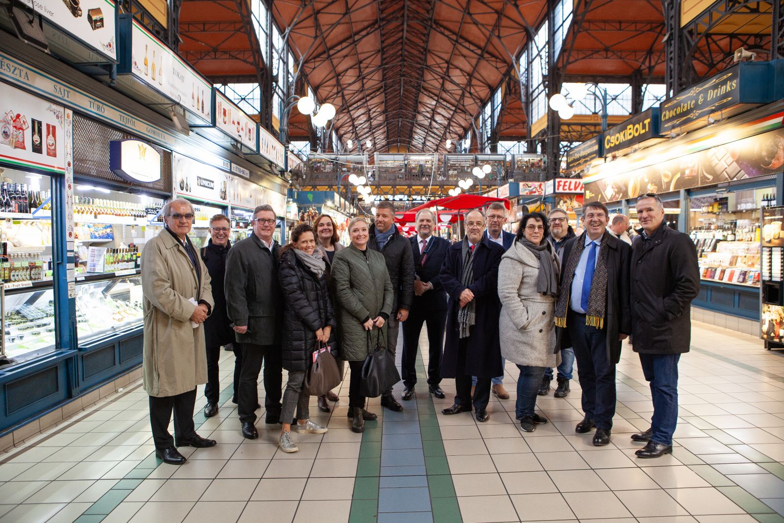 Egy napos látogatást tett a MeinKaufStadt Wien csapata Budapesten 2023. november 21-én. Programjuk a Nagy Vásárcsarnokban kezdődött, ahol Földes Tamás BUDAPEST VÁSÁRCSARNOKAI Piacokat, Üzletközpontokat és Vásárcsarnokokat Üzemeltető Kft ügyvezető igazgatója kalauzolta őket a csarnokban és tájékoztatta őket az épület történetéről és jelenlegi helyeztéről.