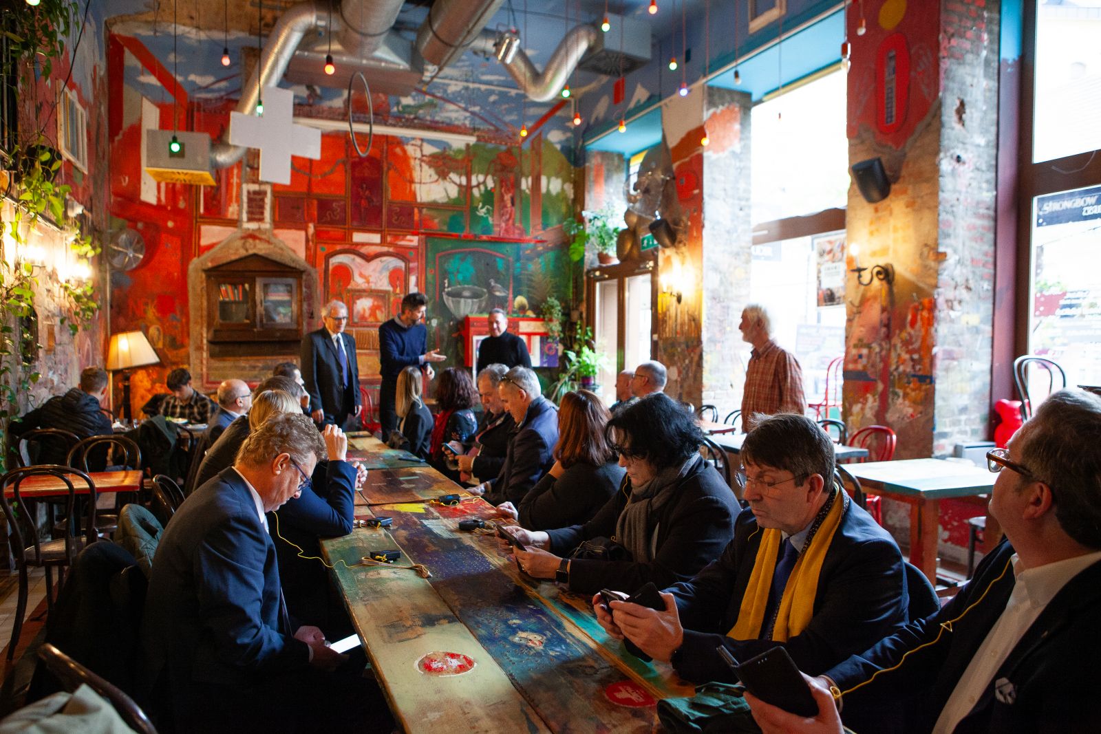 A megnyitó után ellátogattak a Ráday Soho egyik tagjához a Púder Bárszínházba és ott néhány vállalkozóval is tudtak beszélgetni, így kapva közvetlen képet arról, hogy egy budapesti bevásárlóutcának milyen kihívásai és lehetőségei vannak.