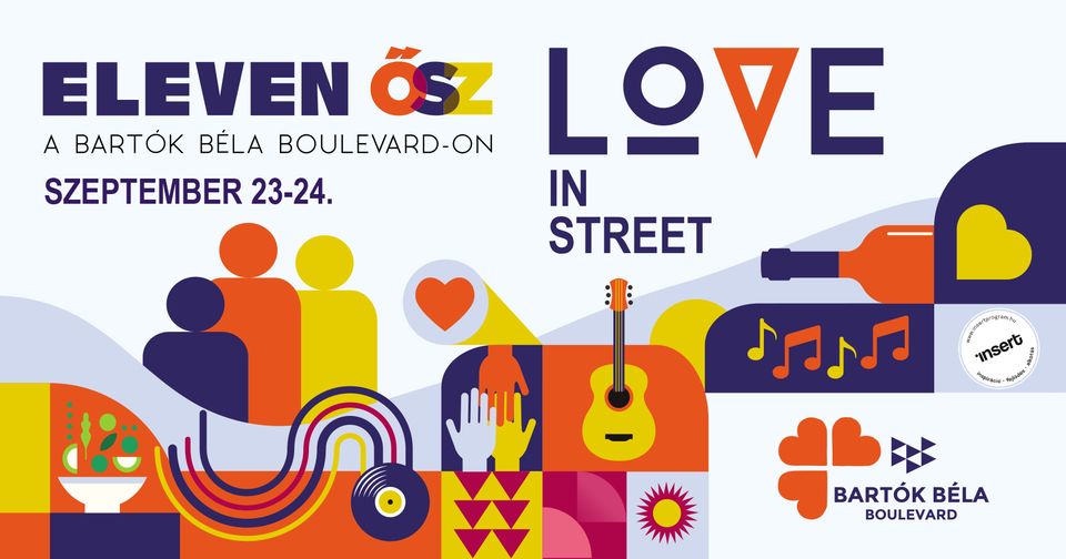 2022. szeptember 23 – 24. Ismét fergeteges művészeti, zenei és családi programokkal várja a látogatókat az Eleven Ősz a Bartók Béla Boulevard-on. „Ez a Mi utcánk” – hangsúlyozzák a szervezők, az utca üzleteit civil együttműködésben összefogó Bartók Boulevard Egyesület tagjai, akik most az egymás iránti bizalomra, megértésre helyezik a hangsúlyt, hiszen hitvallásuk szerint az életünket szebbé, jobbá tevő dolgokban lehet igazán, szívből együttműködni. Éppen ezért az Eleven Ősz ünnepének kezdetét, és egyben a találkozás örömét a mindennapok gondjainak letételével, a jelen pillanatra való fókuszálással egy közös seprés jelképes gesztusával indítják útnak. Szeptemberben ismét megelevenedik a Bartók Béla Boulevard, azaz a kultúra beköltözik Újbudára, a Bartók Béla Boulevard Kulturális Negyedébe, a Gellért tértől a Móricz Zsigmond körtérig, illetve a Feneketlen tóig tartó szakaszra. Love in street – hangzik a nyárzáró fesztivál gondolati magja, a szervezők ugyanis hisznek „a szeretet, a szerelem és a békesség mindent lefegyverző erejében. Hisszük, hogy ha néha-néha meg is tántorodunk, képesek vagyunk elemelkedni a félelmektől és bátran hinni a közös jó „mindenjóját”! Képesek vagyunk megnyílni és bizalmat adni magunknak és egymásnak! Van erőnk kitárulkozni, megismerni, megérteni, Szeretni, Békében élni! Tegyünk együtt kísérletet a közös örömre, az együtt nevetésre, a félelmeket legyűrő Szeretésre! Legyen az Eleven Ősz az az ünnep, amikor a portálok megtisztítása után vendégül látja az utca az ünnepre látogatókat, amikor is bátran szeretjük az utcazajt, kacagjuk a fényeket (melyek olykor világító „szellemi fákjaként” égnek), megértjük a lényeget!” – állt a fesztivál nyári felhívásában. |