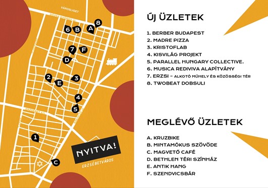 Térj be az új üzlethelyiségekbe nyitvatartási időben vagy a programok egyikére-mindegyikére! A programsorozat április 22-ig tart, ahol nem csak az új vállalkozók várnak kiállítással, finom falatokkal, közösségépítő- vagy alkotó programokkal, hanem a kerület régebb óta működő üzlethelyiségei is! Erzsébetvárosban összesen 14 programponttal startol a Nyitva! Fesztivál, valamint három tematikus városi sétán keresztül a kerület is felfedi építészeti-, történeti- és kulturális titkait a KÉK városi sétáin keresztül.