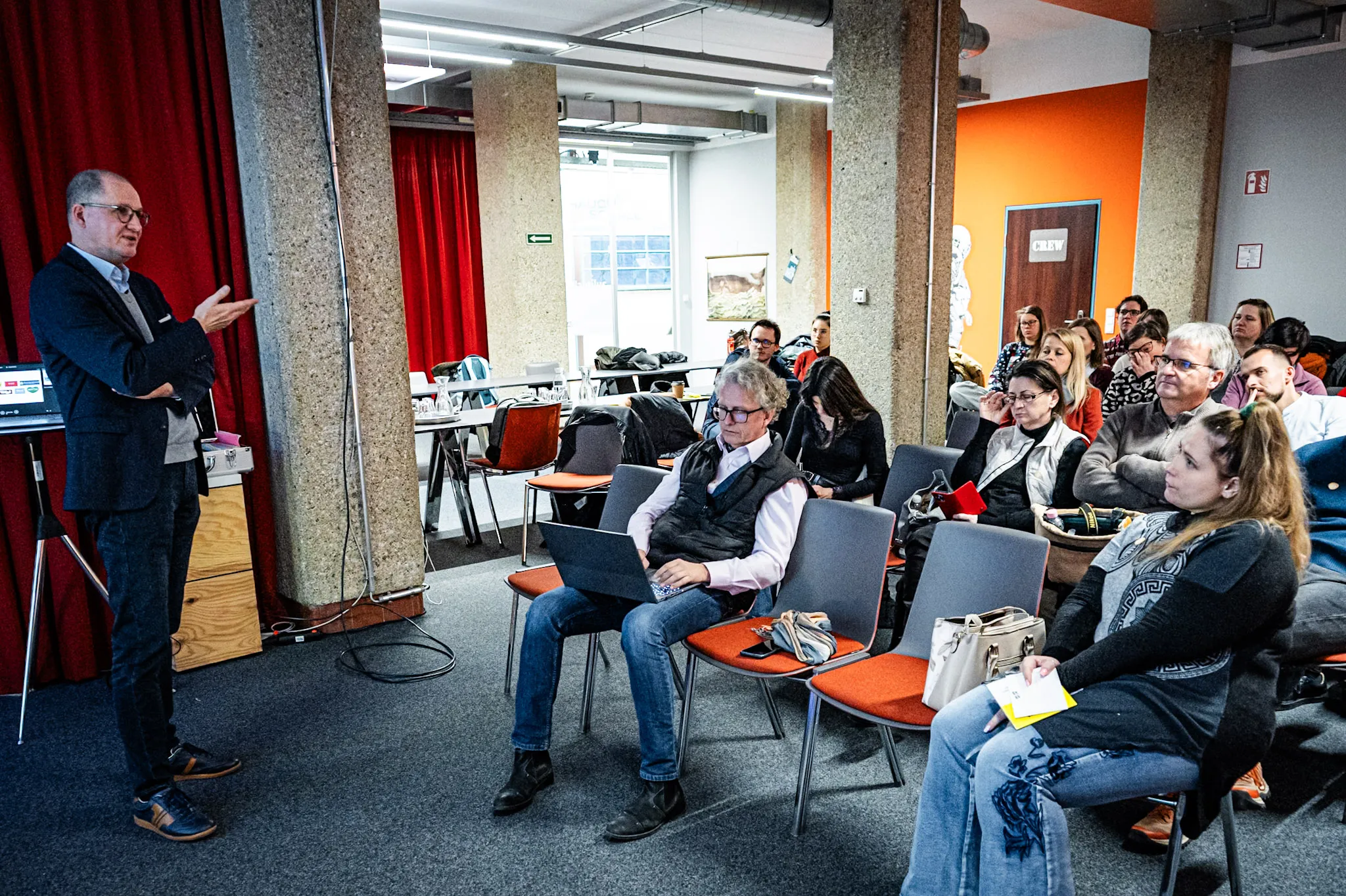 Ezt követően Kovács Balázs, a Linz Tourismus megbízott szakértője tartott szakmai előadást a Tabakfabrik konferenciatermében. A prezentáció az „újturizmus” szemléletét mutatta be Linz példáján keresztül, kiemelve, hogy a turizmus jövője az élményalapú, fenntartható, hálózatos és emberközpontú megközelítésben rejlik, ahol az életminőség, a mentális nyitottság, az inspiráció és az új narratívák – mint a találkozások művészete, a flow-élmény, az „életművészet” és a boldogságkultúra – kerülnek fókuszba. A prezentáció során olyan jó gyakorlatokról hallhattunk, mint az alternatív konferencia-műfaj, a BlueMeeting®, vagy az önkénteskedésre épülő turisztikai applikáció, a CopenPay.