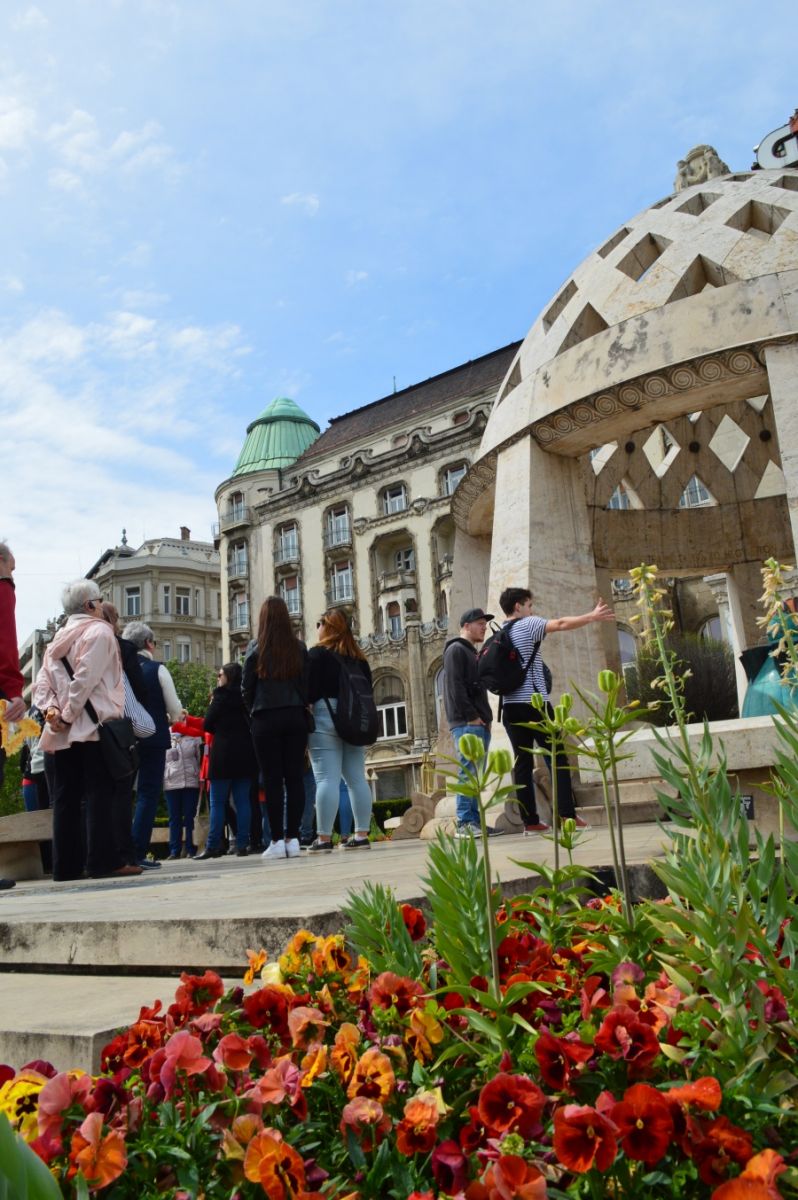 Kivételesen a Nyugati térről indult, az egyébként Jókai és Liszt Ferenc teret (Séta a Liszt Ferenc és a Jókai téren) bemutató séta, mivel történetileg összekapcsolódik ez a terület. Utunkon megelvenedtek a házak homlokzatai, a görög mitológiában jártas vezetőnk csodás világba kalauzolt el minket. Végül pedig a Liszt Ferenc téren a Cafe Vianban láttak minket vendégül egy-egy kávéra, üdítőre, megkoronázva ezzel a két napos programokat!