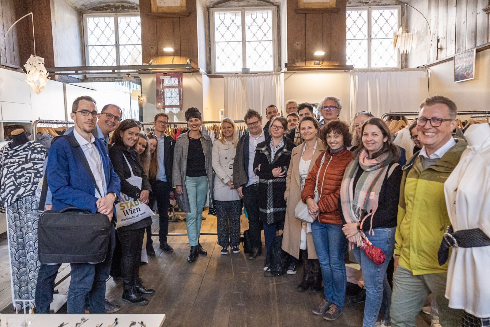 After a bit of refreshment, we continued our journey to the center of Vienna and first visited the 7th district under the guidance of Markus Frömmel, joined by Marie-Therese Croy-Dülmen-Gumprecht. Here we saw metro construction sites and were told how important it is to ensure the functioning of the businesses there during this time. They no longer close off the area, as they did many years ago, and use transparent protective walls to prevent an alley-like passage next to the shops. Additionally, they receive support and rent compensation, as well as small gifts to offer to customers. Moreover, they also organize events periodically, which encourages people to dare to enter these areas and use the services of the businesses present. In this, of course, not only the Chamber but also the city of Vienna is a cooperating partner.