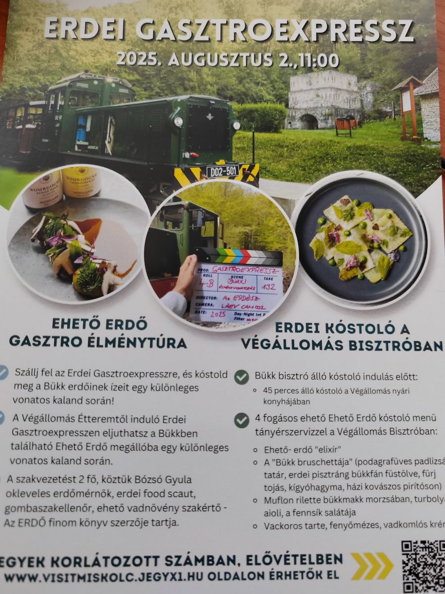 Vendégeink erdei gasztrotúrán vehetnek részt a Michelin ajánlású Végállomás Étteremtől induló Erdei Gasztroexpresszen, amellyel eljuthatnak a Bükkben található Ehető Erdő megállóba, ahol a résztvevők vadnövénykutató túrán fedezhetik fel a minket körülölelő bükki erdő ehető részeit szakmai vezetés, erdei stand up keretén belül.