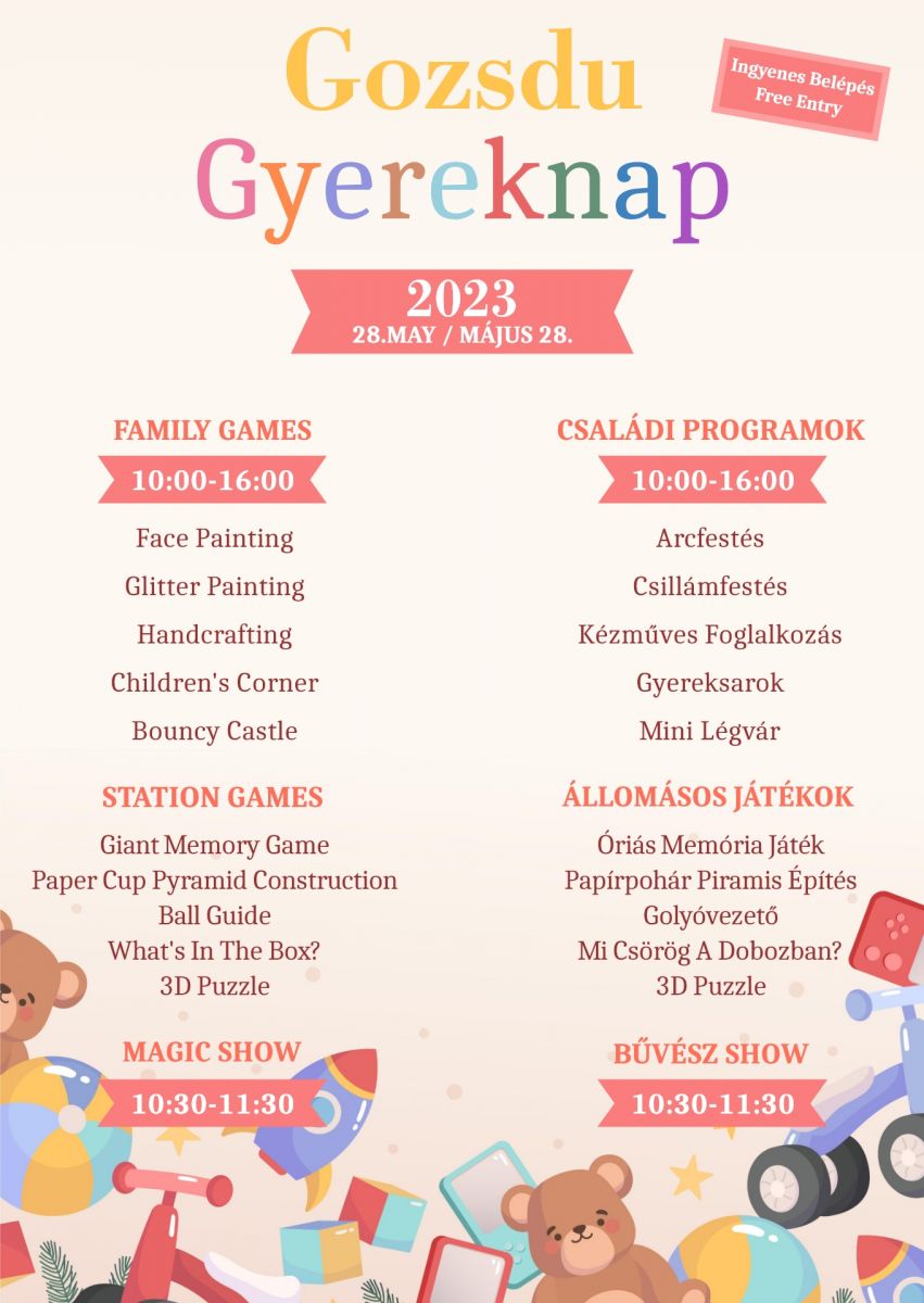 Gyertek és játszatok velünk május 28-án A Gozsdu gyereknapon, ahol az alábbi programokkal várunk Benneteket!