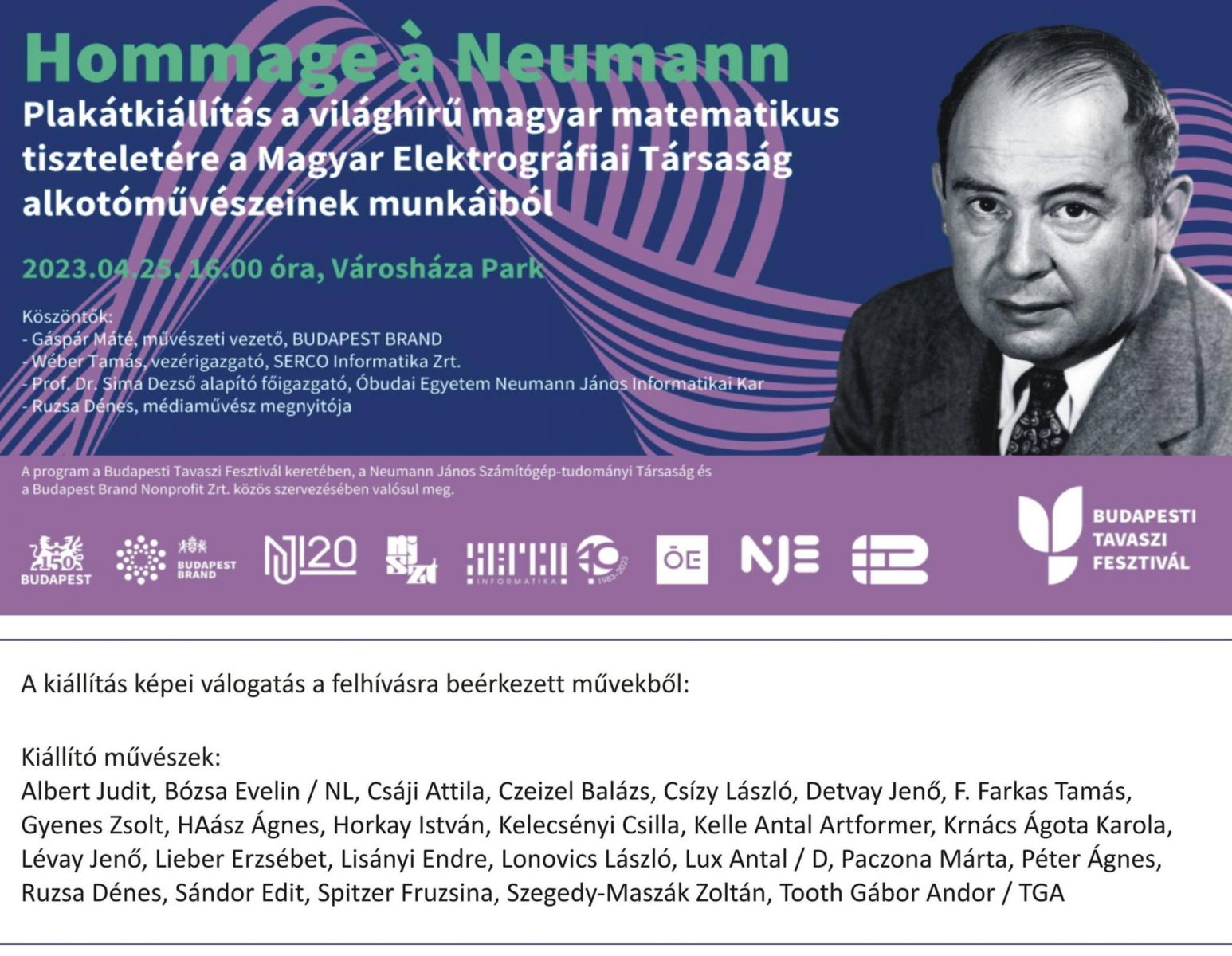 a Magyar Elektrográfiai Társaság és a Neumann János Számítógép-tudományi Társasággal közös szervezésben megrendezett, Hommage á Neumann c. kiállítás sorozat 2. rendezvényére, kültéri plakátkiállítás megnyitó ünnepségére.