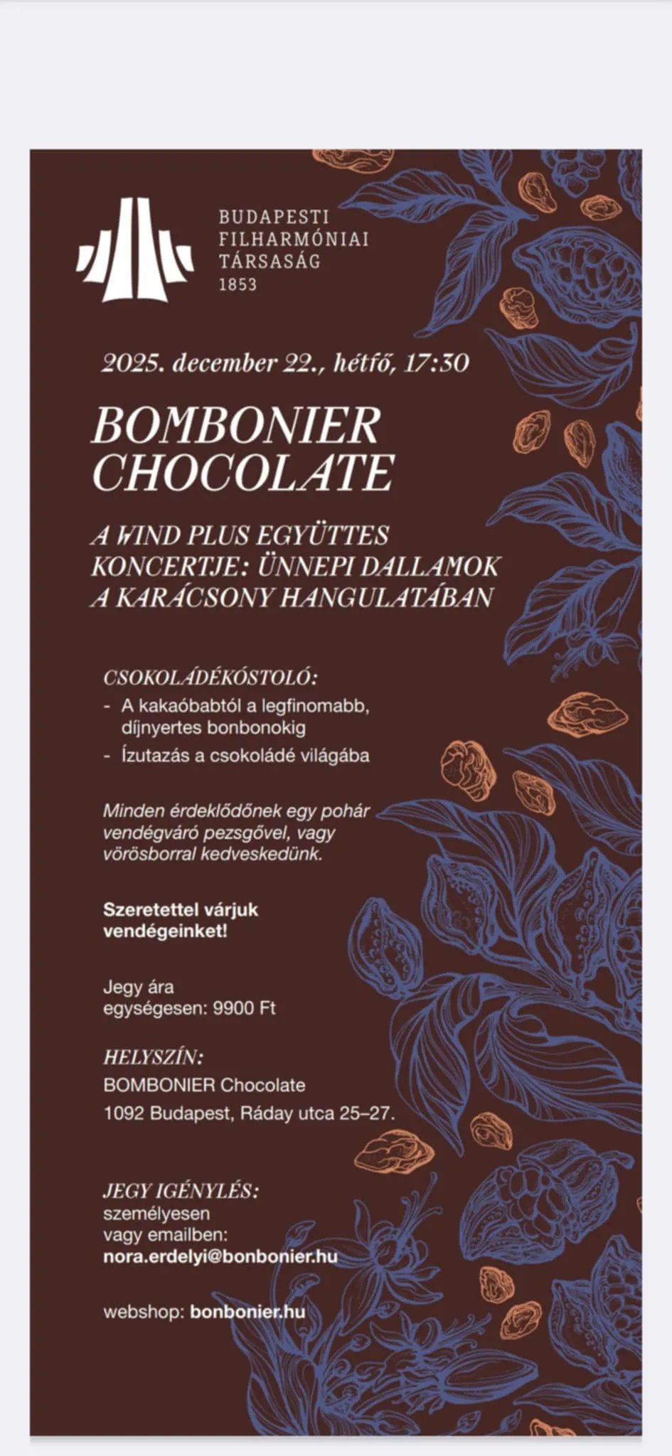 - Személyesen vagy e-mailben: Email cím mutatása, Ráday u 27. Bonbonier