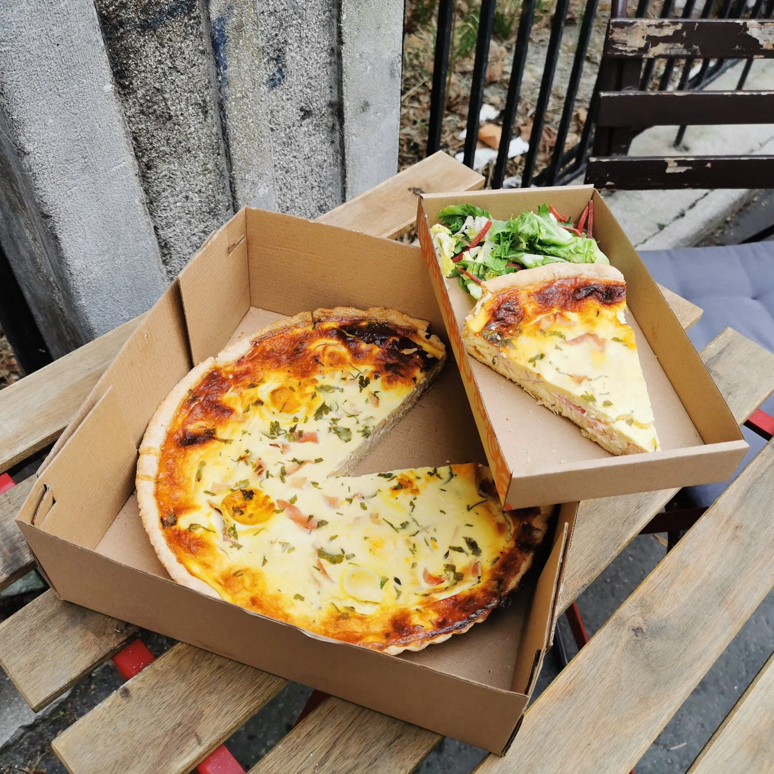 A kínálat tudatosan nem ragad le a desszerteknél, így ebédmenü is van: választhatsz levest és főételt, vagy császármorzsát levessel. Naponta két-három, folyamatosan változó leves közül lehet választani, így mindig van valami aktuális, szezonális választás. A menüben quiche is szerepel: sós, tartalmas, kifejezetten jó opció egy gyors, mégis laktató ebédhez. Itt válik igazán világossá, hogy a Császármorzsa nem desszertbár, sokkal inkább egy klasszikus, kicsi vendéglő. Az italoknál is marad az egyszerű, természetes vonal: házi szörpök alapból vannak, de közben az újabb trendek is megjelennek – például matcha és ube.